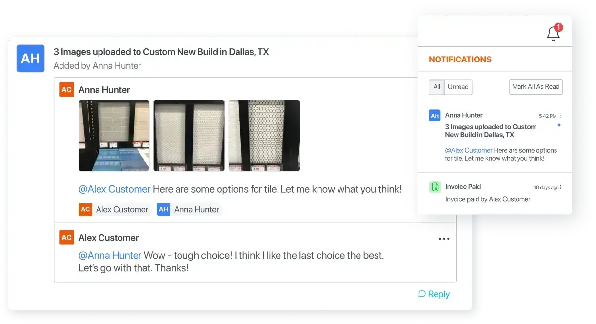 Track Progress – Photos, schedules, and milestones at your fingertips